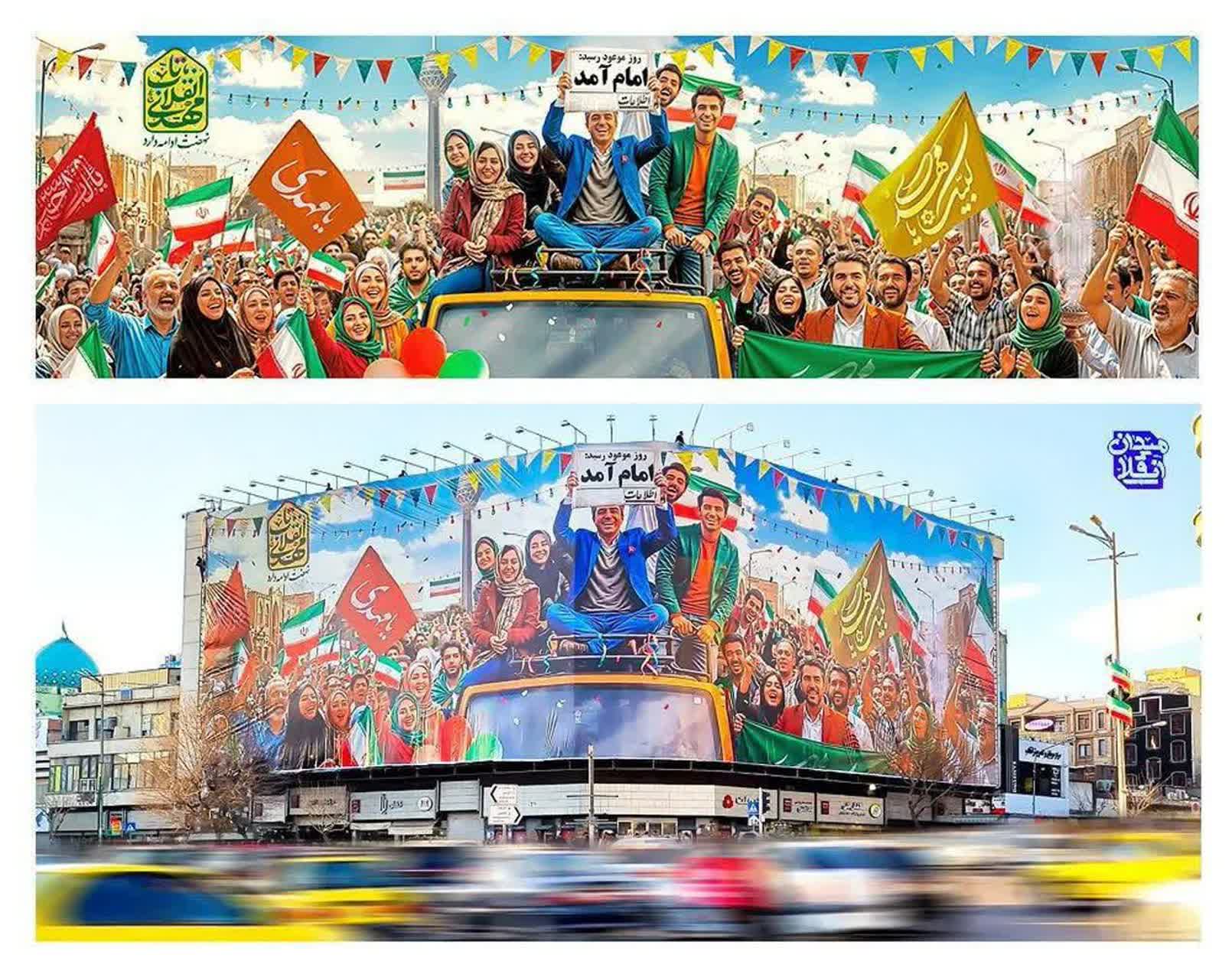 این دیوارنگاره با تصویری از تجسم زیبای روز ظهور حضرت ولی‌عصر (عج) و بازسازی تصویر خاطره‌انگیز «امام آمد» در روزهای پیروزی انقلاب اسلامی، حال‌وهوایی معنوی و امیدبخش را در قلب پایتخت به نمایش گذاشته است.