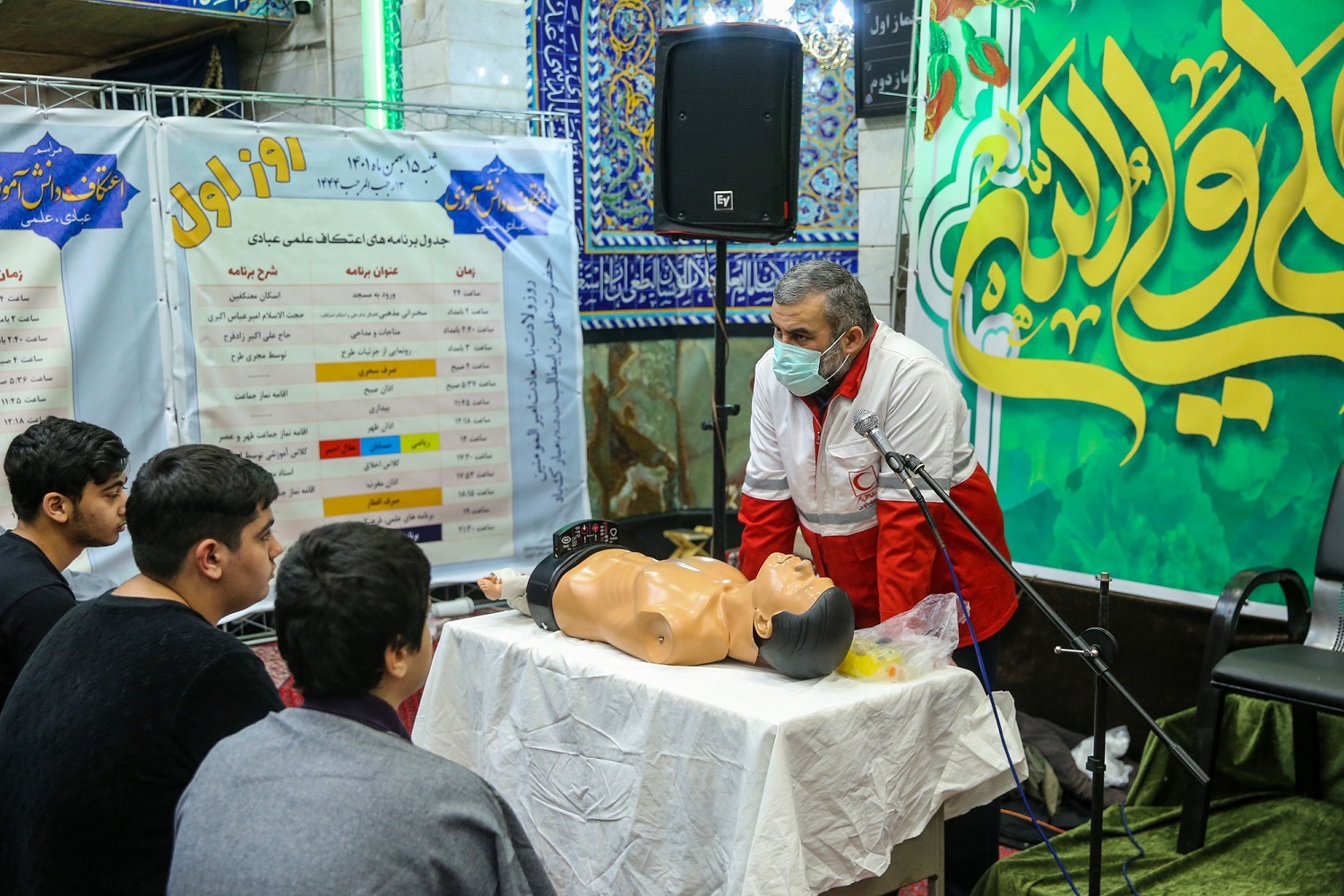 همزمان با میلاد پر برکت حضرت امیرالمومنین علی(ع) پنجمین آئین اعتکاف علمی - عبادی دبیرستان محبان‌الحسین(ع) جامعه تعلیمات اسلامی در مسجد جامع نور واقع در میدان خراسان تهران با حضور پرشور و طراوات دهه هشتادی‌ها در حال برگزاری است.