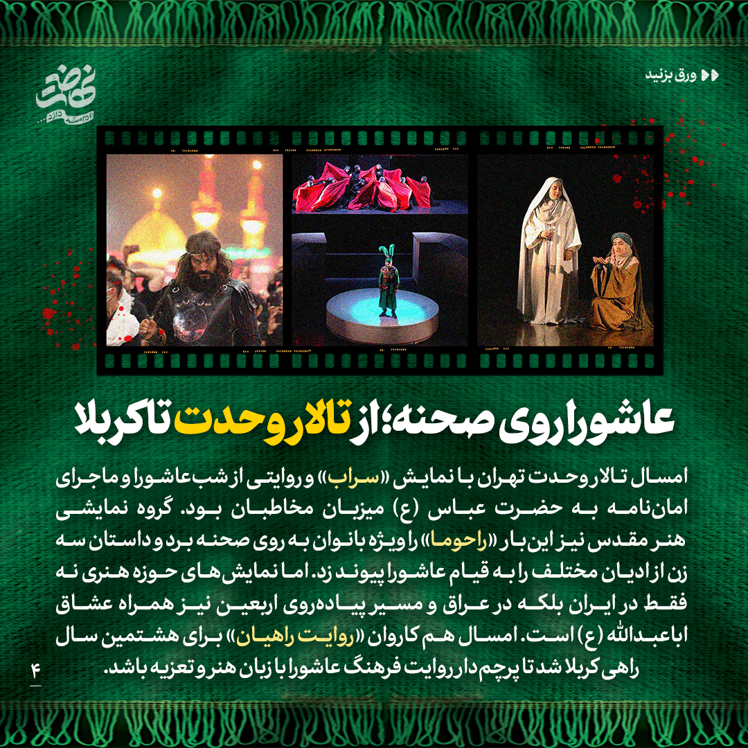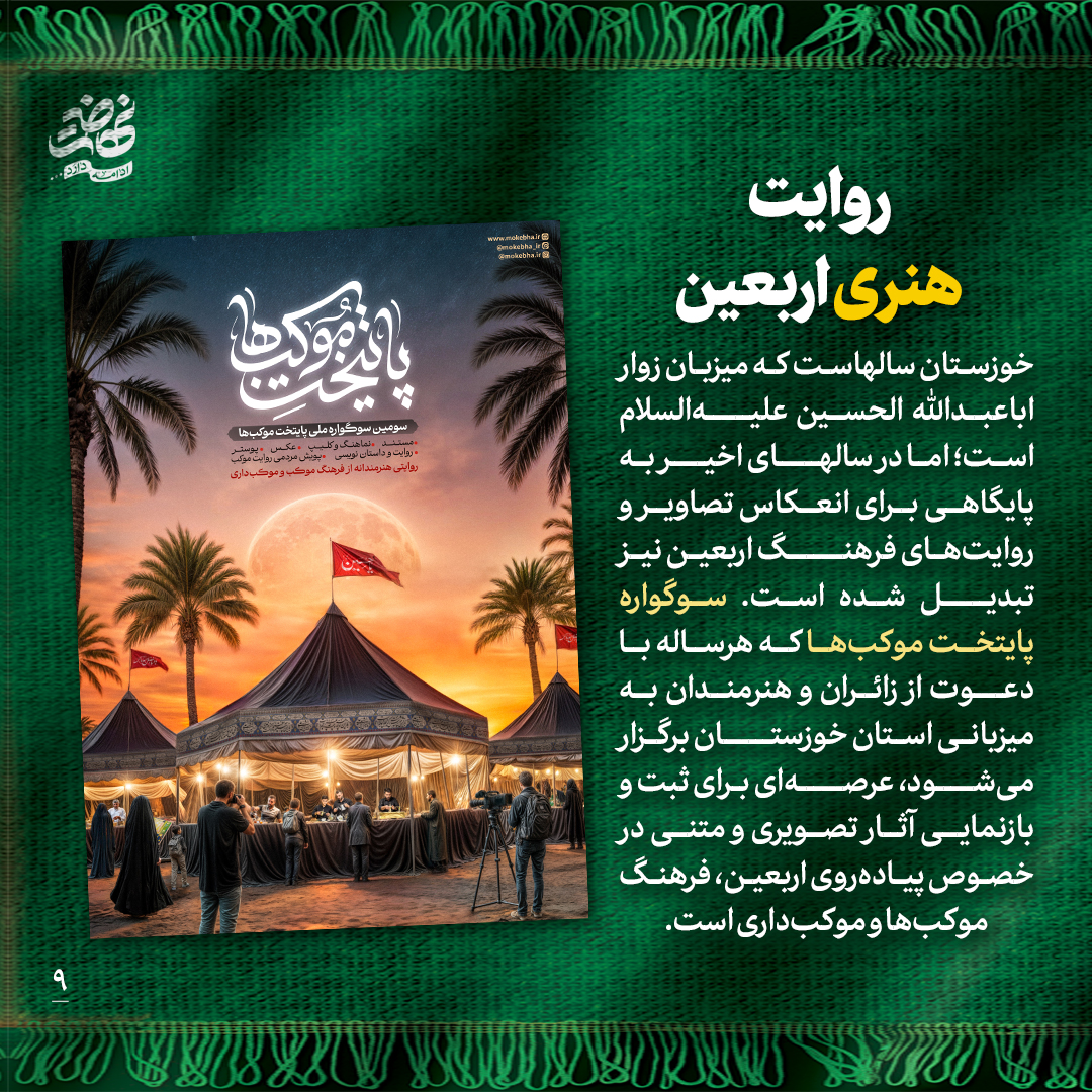 به گزارش روابط عمومی سازمان تبلیغات اسلامی، به بهانهی اربعین حسینی و اجتماع باشکوه عاشقان حضرت ثارالله در طریق الحسین، در این شماره از نشریه دیجیتال مروری میکنیم بر برخی از آثار و تلاشهای خانوادهی سازمان تبلیغات اسلامی که هریک عرض ارادتی است به ساحت والای حضرت اباعبدالله الحسین علیهالسلام به زبان هنر و رسانه.