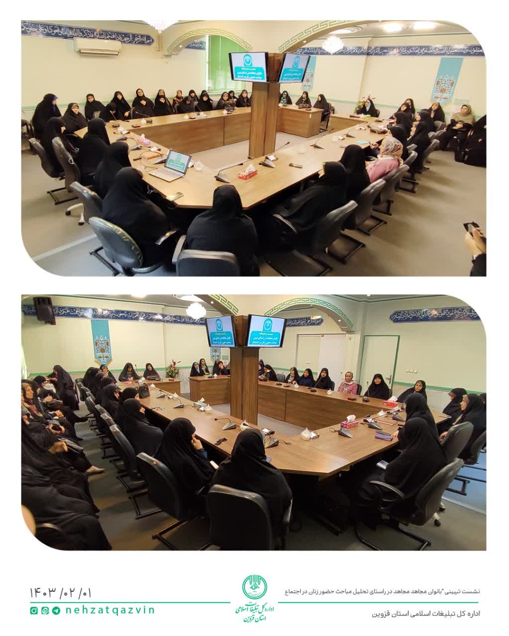 نشست تبیینی با عنوان "بانوان مجاهد در راستای تحلیل مباحث حضور زنان در اجتماع" با محوریت بررسی فرصتها، چالشها و آسیبهای مرتبط با فعالیتهای فرهنگی و اجتماعی بانوان، با حضور جمعی از بانوان برجسته و فعال فرهنگی استان قزوین و سرکار خانم دکتر طالبی، مدیر کل امور بانوان سازمان تبلیغات اسلامی کشور، برگزار شد. این گردهمایی که به میزبانی اداره کل تبلیغات اسلامی استان قزوین و به منظور تبادل نظر و ارائه راهکارهای عملی برای تقویت حضور و نقشآفرینی بانوان در عرصههای مختلف اجتماعی صورت گرفت، فضای صمیمی و پرباری را برای تبادل اندیشهها و تجربیات فراهم آورد.