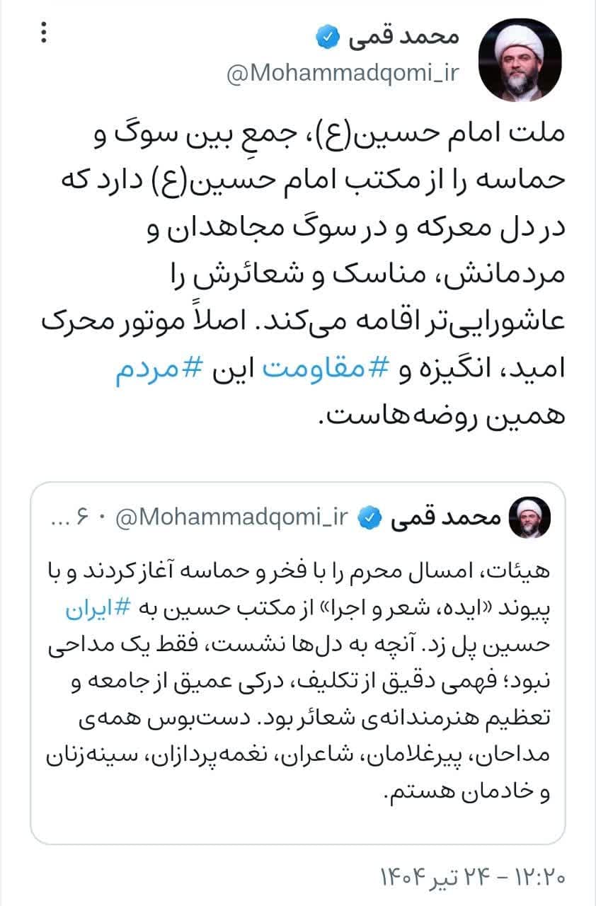 ۲۴ تیر | حجتالاسلام قمی در صفحه شخصی خود نوشت؛