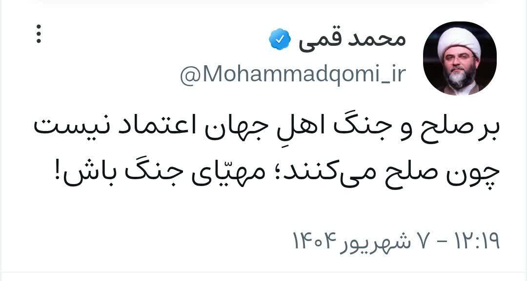 ۷ شهریور | حجتالاسلام قمی در صفحه شخصی خود نوشت؛