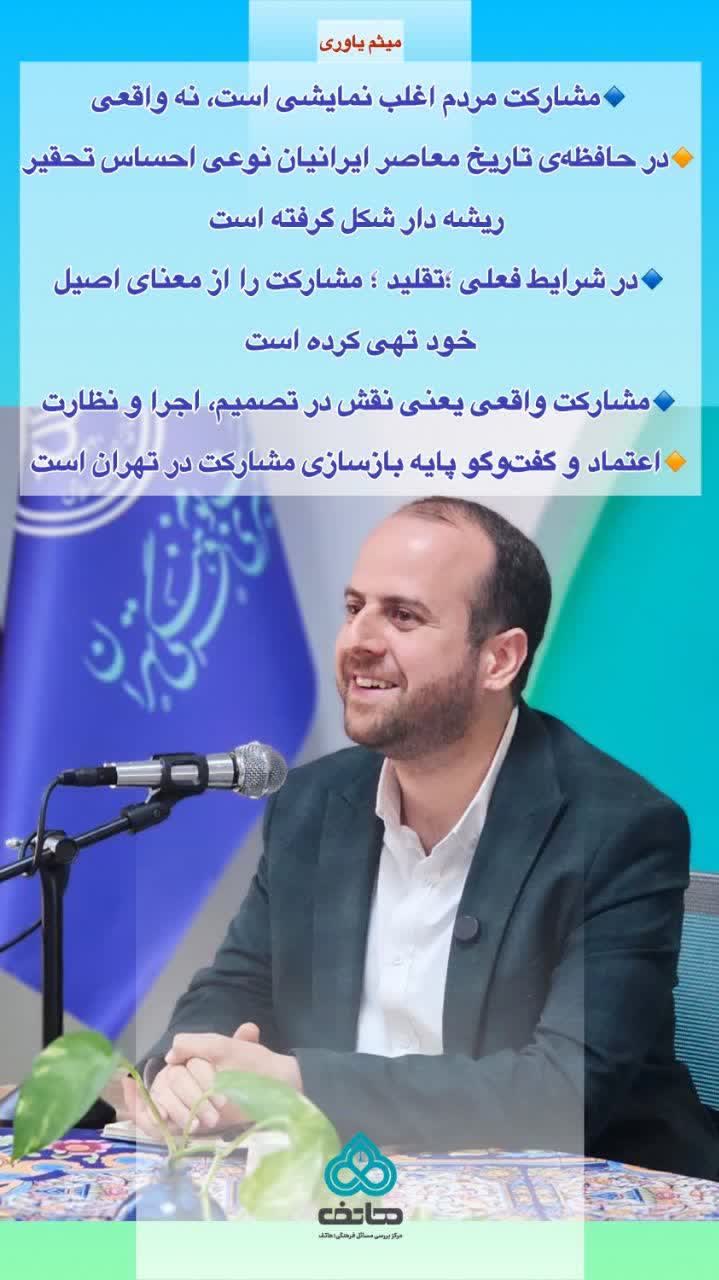 در جلسه اخیر، با محوریت موضوع «از مشارکت نمایشی تا میدانداری واقعی»، راهکارهای تحول در مدل تعامل با مردم در حوزه سیاستگذاری فرهنگی مورد بحث قرار گرفت. سخنرانان و شرکتکنندگان بر لزوم عبور از مشارکتهای صوری و رسیدن به حضور اثرگذار و واقعی مردم در عرصه فعالیتهای فرهنگی تأکید کردند.
